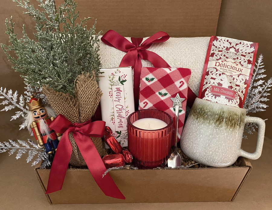Celebrate the joy of the season with our festive Christmas Gift Box, carefully crafted to spread cheer and create special moments. This delightful box is filled with a selection of charming items designed to bring warmth and happiness to your holiday celebrations.